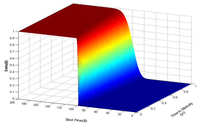 4. δ (delta) 期權價格對「標的」的微分。資產本身上漲1元,權利金漲多少。