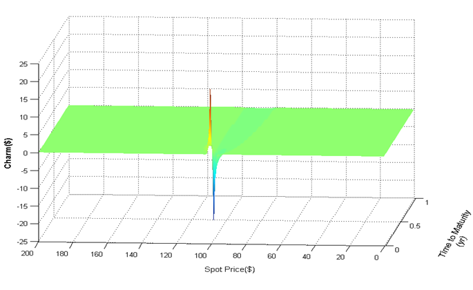 7. Charm (Delta 衰退) Theta對資產微分,或是Detla對時間微分,或是期權對資產和時間的偏微分。