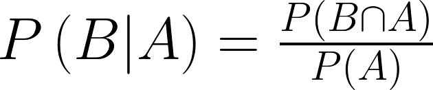 先定義P(A|B),代表B發生的時候,A發生的機率。例如我想描述闖紅燈而被撞的機率,就可以寫成 P ( 被撞 | 闖紅燈 )。