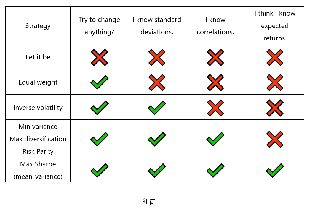 如果投資人放棄對於報酬和風險等因素的預測,應該是順其自然,讓比例自由變動,而不是用「齊頭式平等」,強迫這些部位按照主觀設定分配。