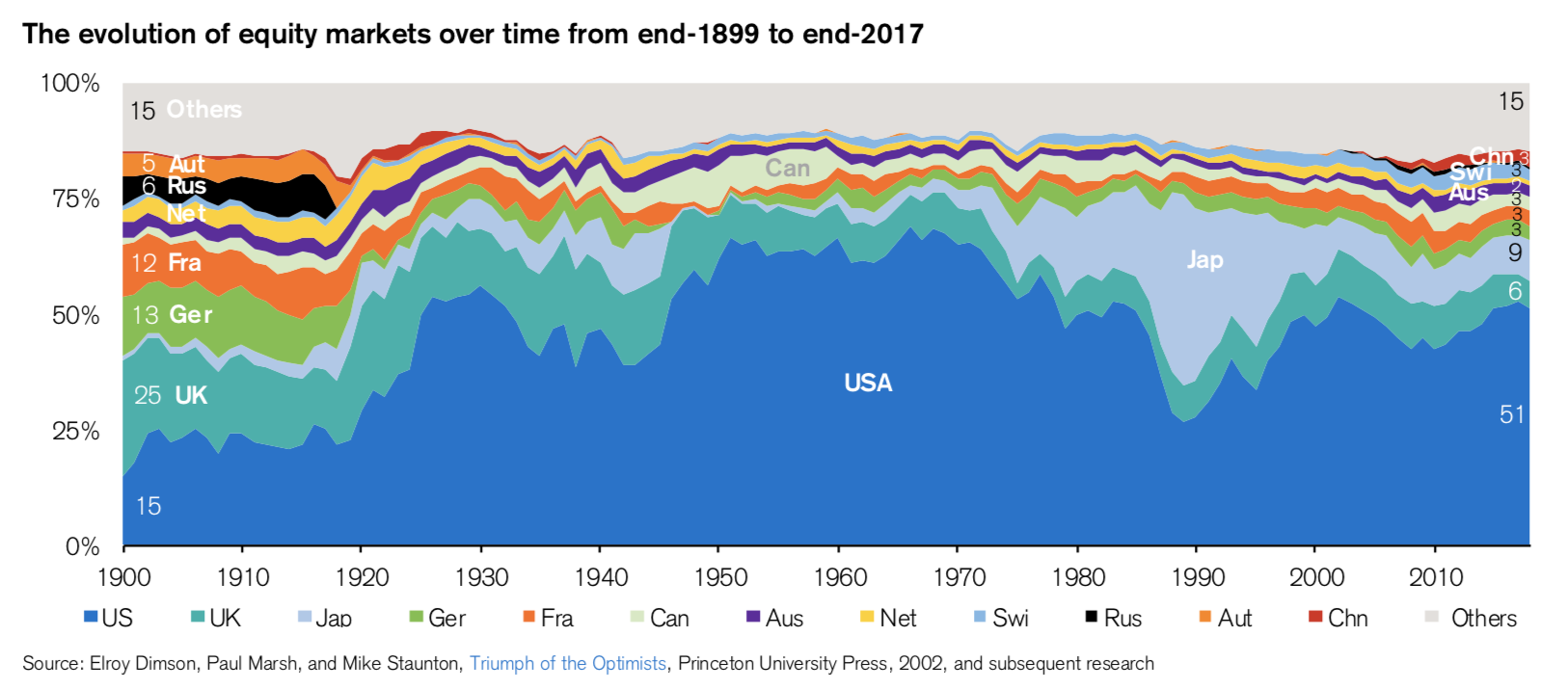 1900年,英股市值最大;1990年,日本股市稱霸地球;2010年,美國才是王者。