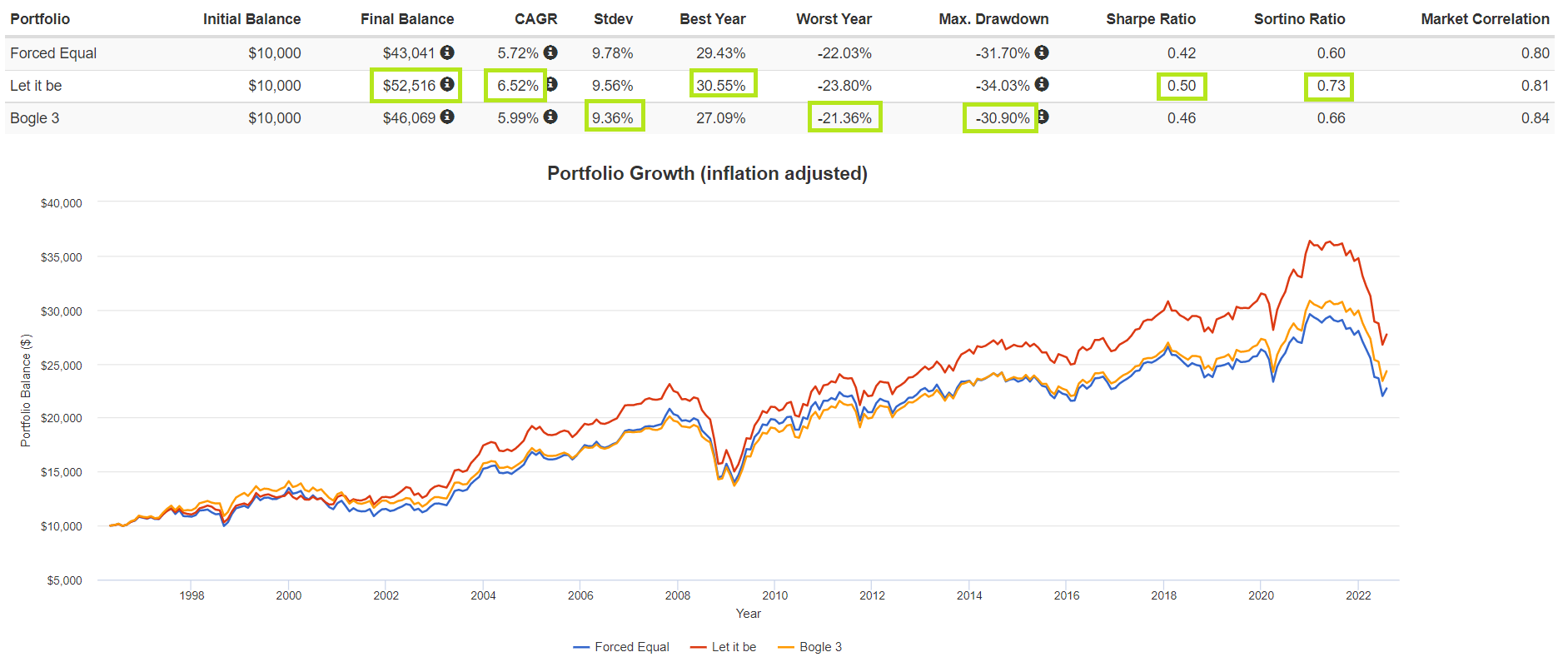 Bogle和自然權重互有勝負,但如果要我挑選最心儀的組合,我會以「風險調整後收益」為準。