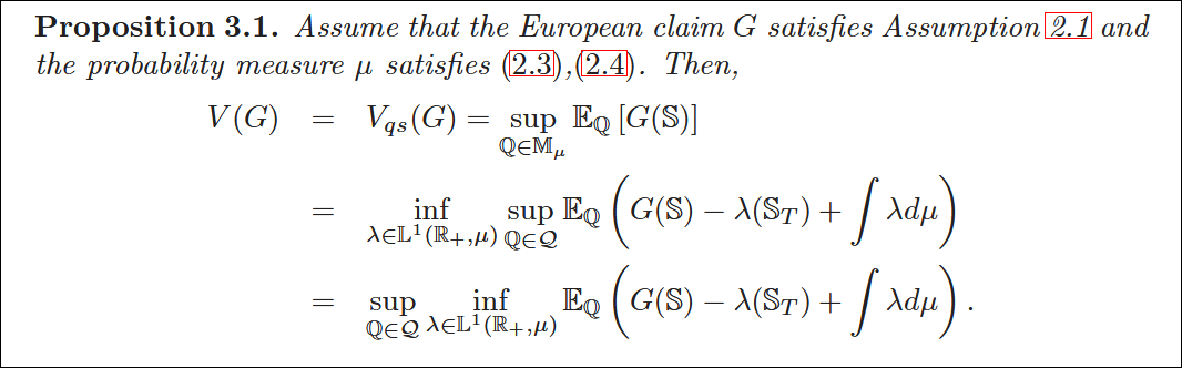 Worst case下的定價,能等於理論中無摩擦對沖的成本,至少也不要留有對偶縫隙,這樣妳才能把數學轉換換成金融語言。