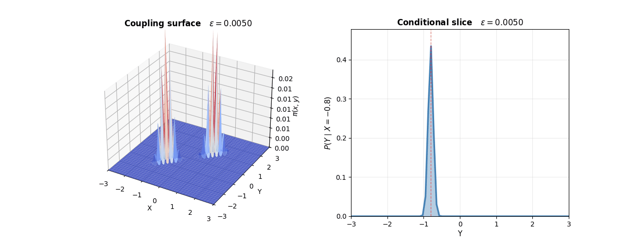 為了在所有martingale coupling中,找出一個最接近某先驗參考測度的傳輸計畫,有人把統計力學的entropic regularization搬過來套用。