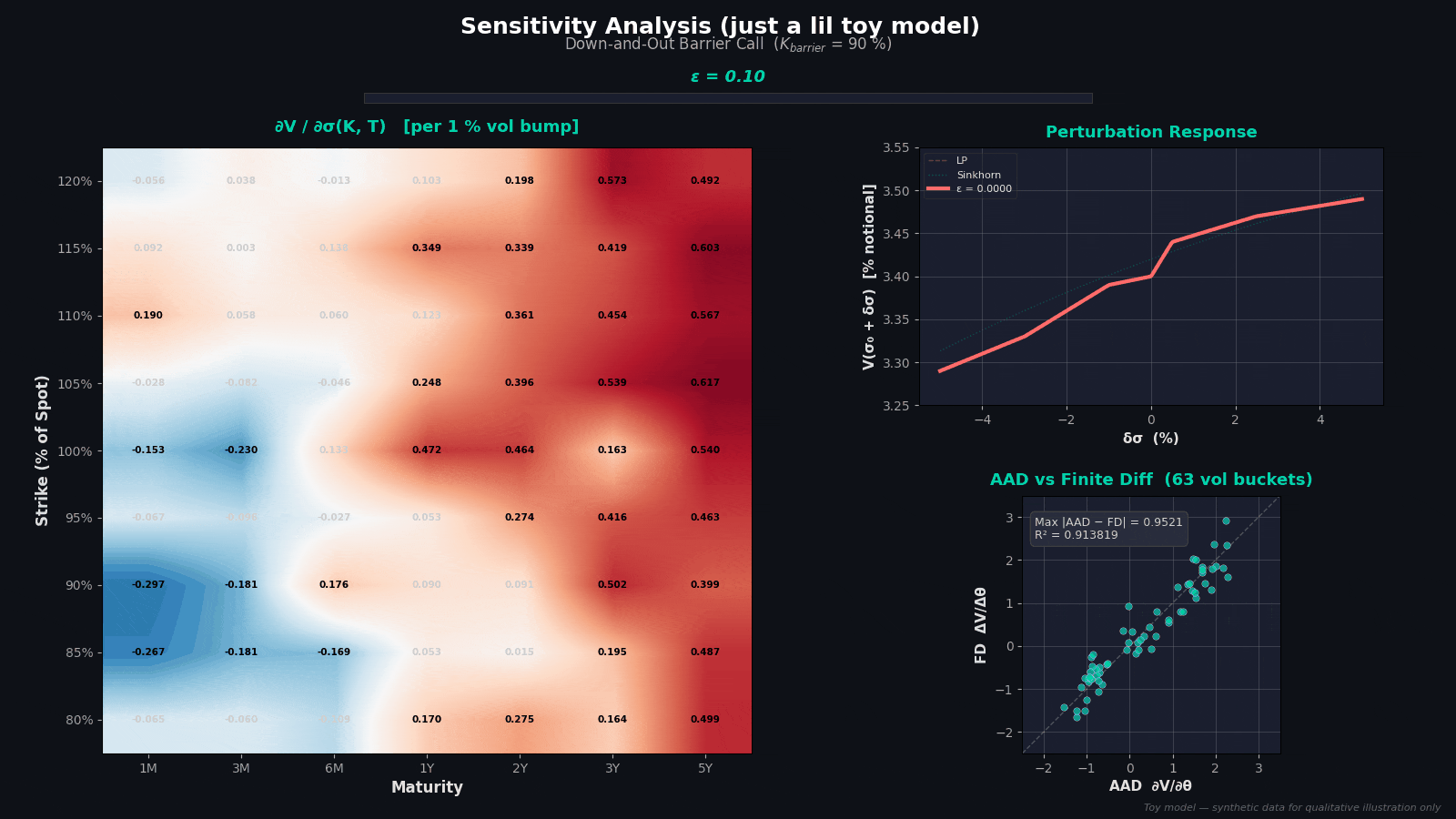 於是神奇的事情發生了,妳把離散化後退化的線性規劃問題,磨成嚴格/強凸優化,這讓解變得平滑、對輸入參數更可能可微,同時妳也可以做像是掛上adjoint自動微分(AAD)、隱微分等ML工具的敏感度測試。