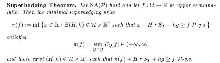 現在存在性有了,妳也可以證明,雙重對偶對應到的superhedging是否依然成立。
