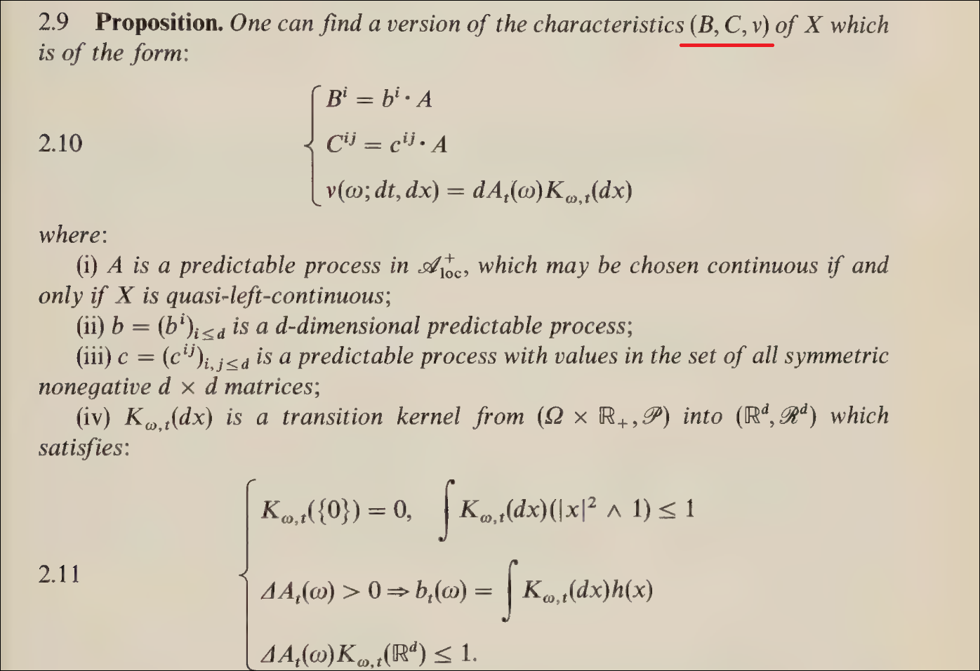 一般性之路,你鎖定semimartingale(允許jump), 用Jacod–Shiryaev的semimartingale characteristics(B, C, ν三元組)描述。
