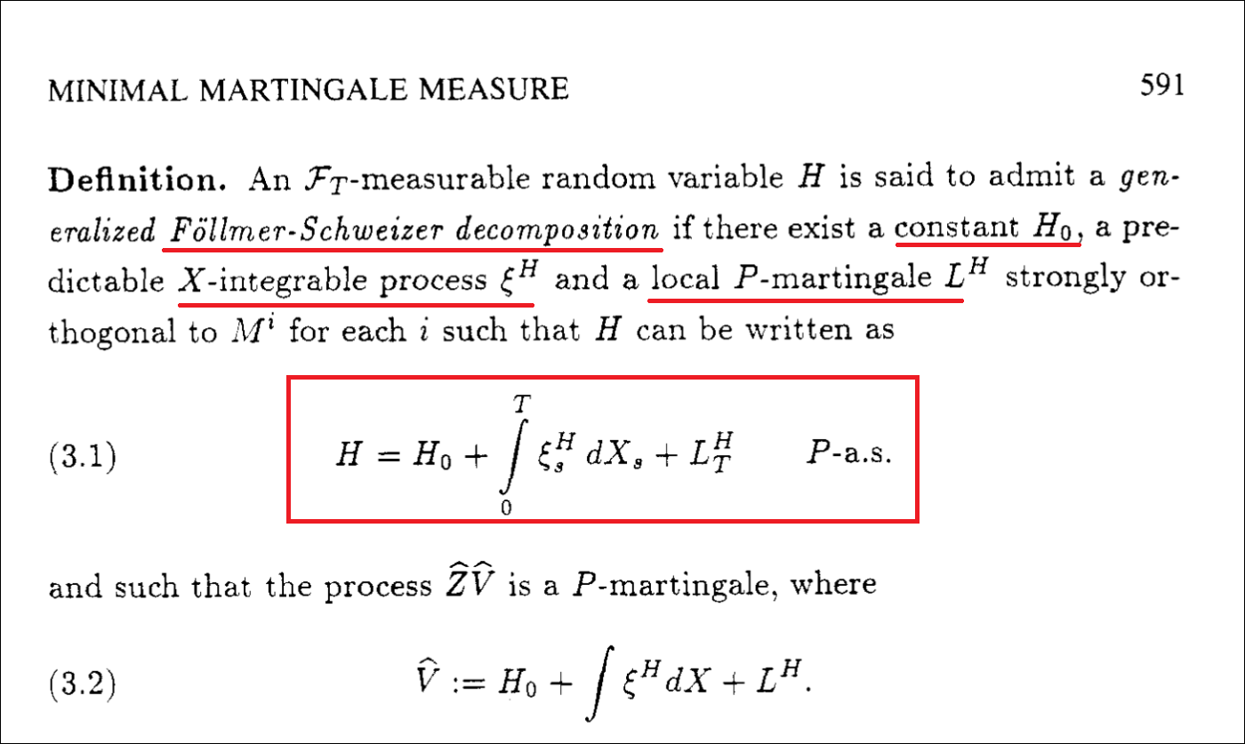 非完備對沖,你的目光停在Follmer–Schweizer分解上,local risk minimization策略中,把平方可積的claim,分解成交易本身,以及價格martingale部分強正交的殘差。
