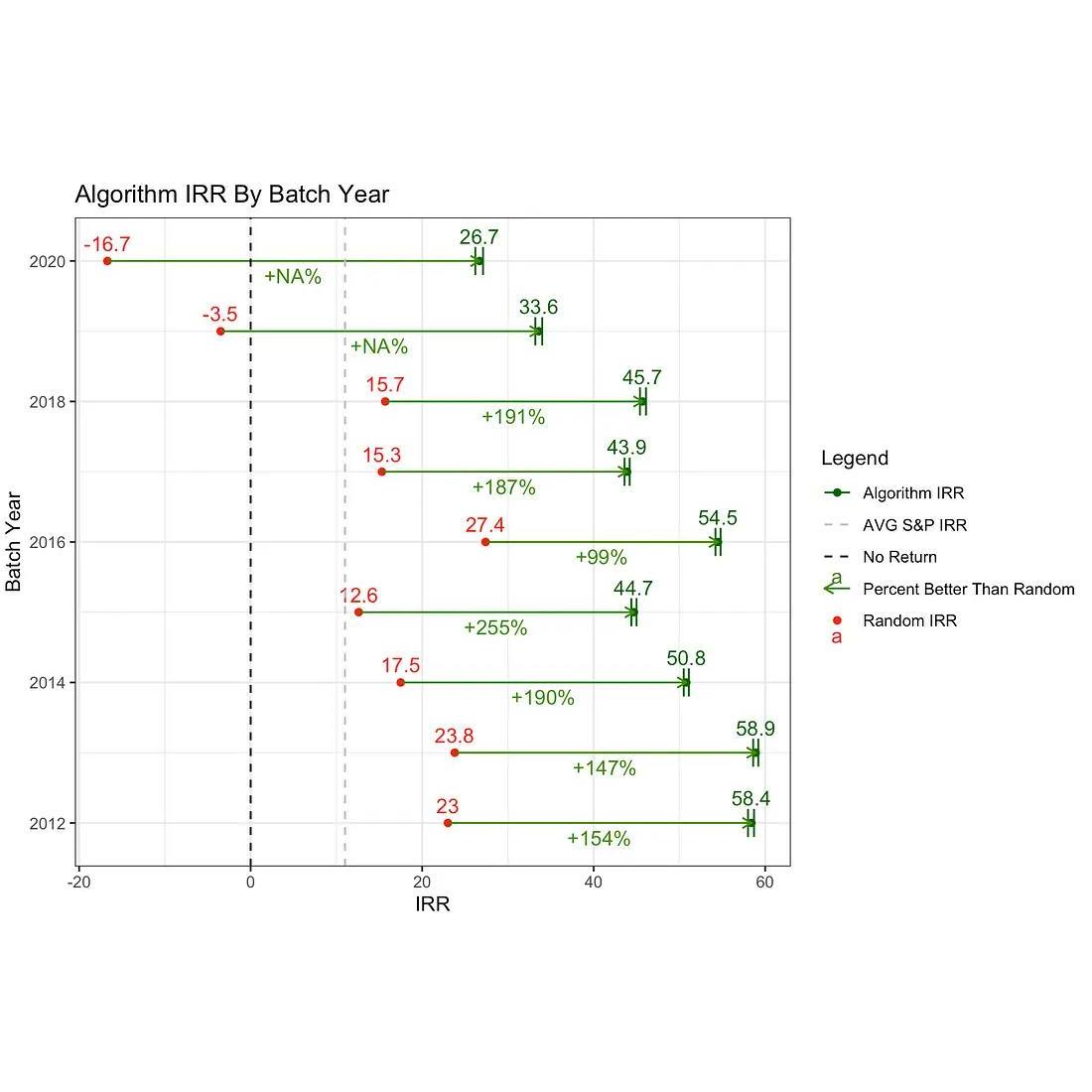 這代表YC平均收益不錯,而隨機選擇的表現卻很慘。